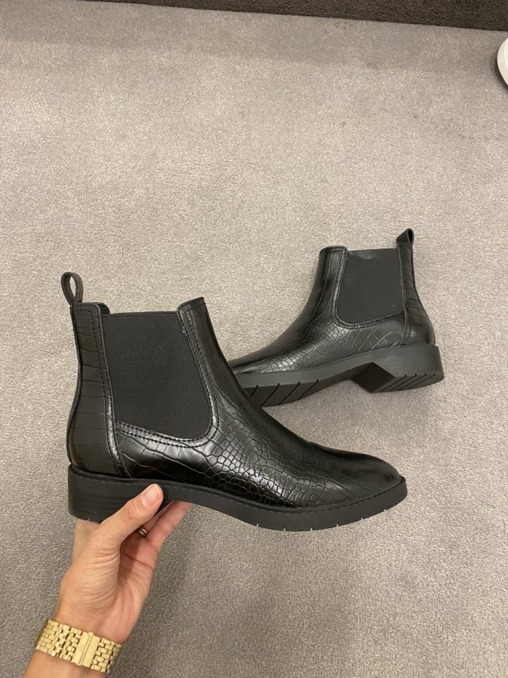 Love the croc texture on these Chelsea boots. I love a good heel, but more often than not I find myself grabbing a good flat boot to throw on. This one is an amazing price under $100.
