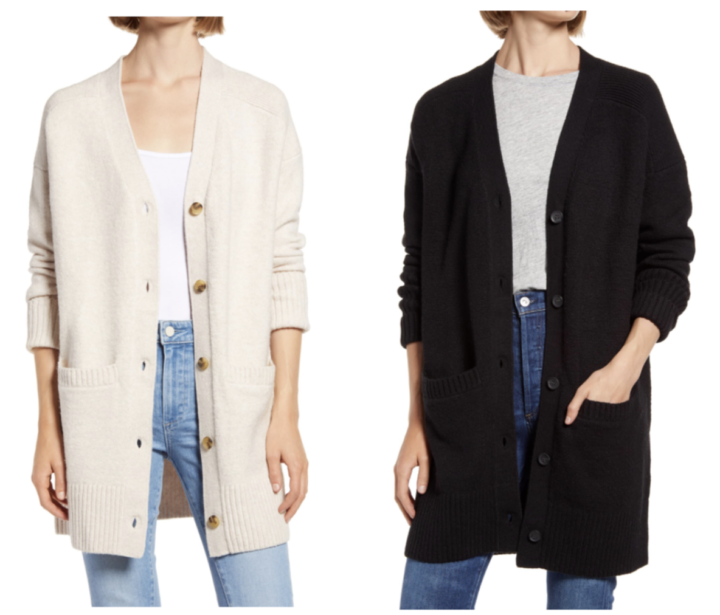 I always end up stocking up on cardigans during the Anniversary Sale and this was one of my favorites. It has a few sizes left all of the color options. Love the ribbed hems and pockets and this one is under $50.