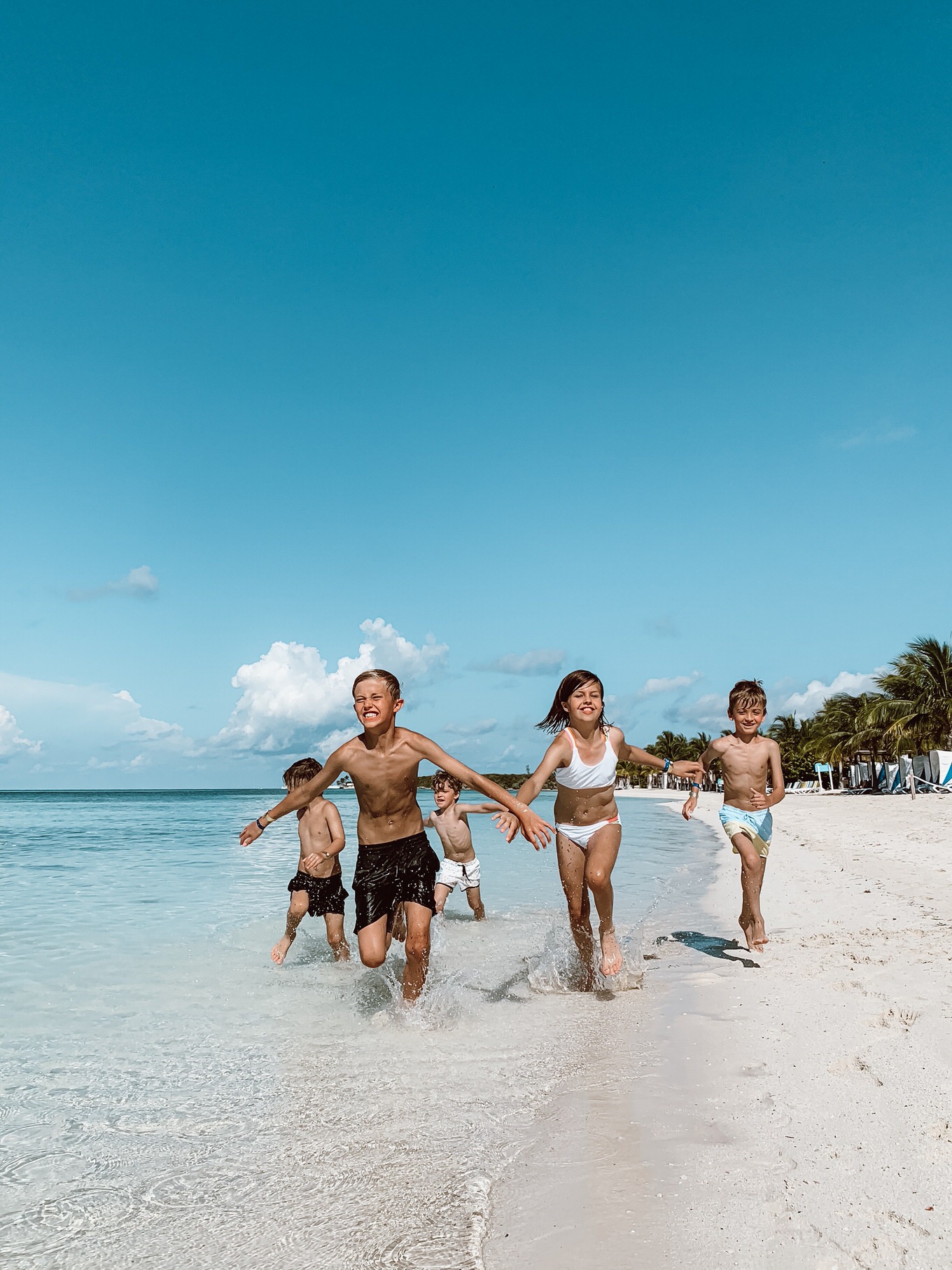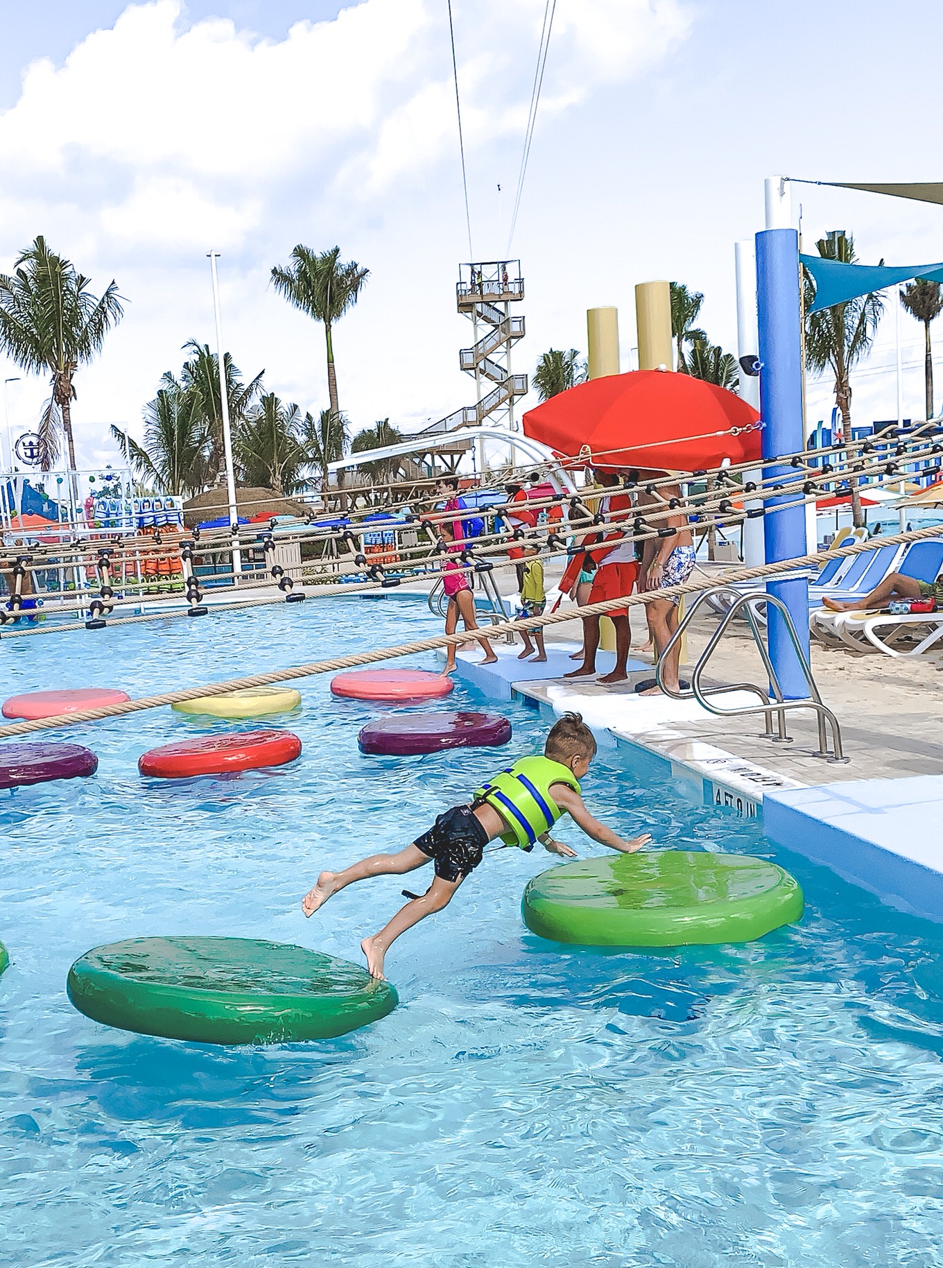 Royal Caribbean has so many amazing destinations to choose from, but our day at Perfect Day at CocoCay, Bahamas, the first in their new Perfect Day collection of private island destinations, was probably our favorite stop yet! Honestly, I could put together a whole post just on the island – there was so much to do! It’s the perfect destination for families who have different speeds or interests (or both :). Cody and the kids are really adventurous, so they got their thrill with the helium balloon, Up, Up & Away (which gives you the highest view in all of the Bahamas!), Thrill Waterpark (which has 13 slides, including the tallest water slide in all of North America), and a 1,600 foot long zip line — did not disappoint. Then, over on the other side of the island is the most beautiful beach, Chill Island, where you can lounge and relax. The water is warm, super clear and a gorgeous color and when the tide is right, you can walk out really far (a couple hundred yards). We even found star-fish on the beach, which was a huge hit. There were also tons of great food options on the island. I could go on forever, but Perfect Day at CocoCay really had something for everyone in the family, and all in close proximity so you don’t lose any precious daylight going back and forth between different activities.