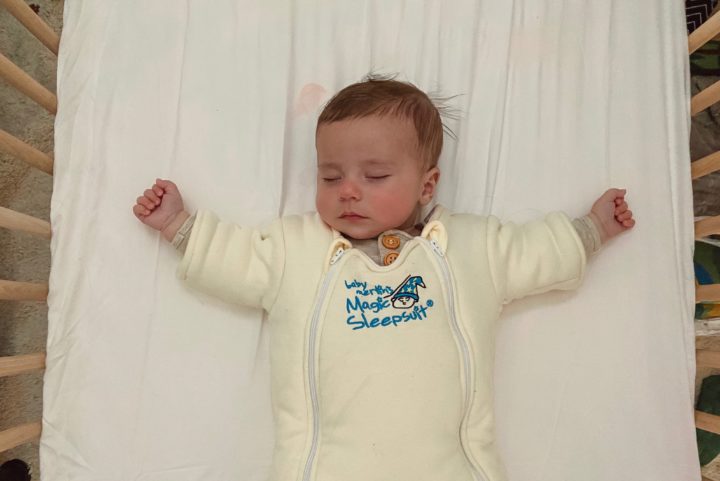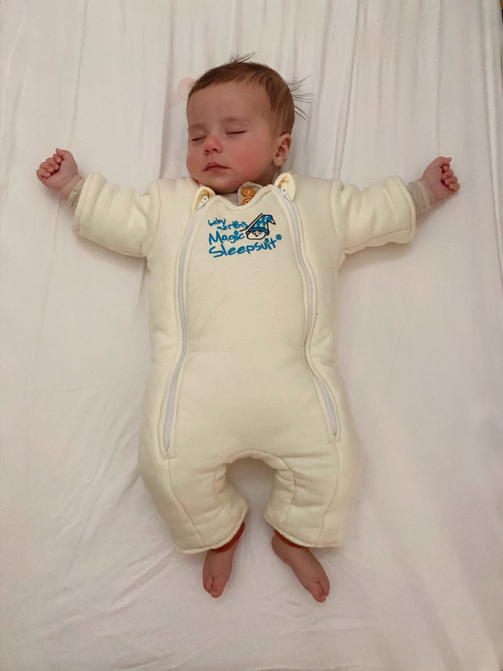 This sleepsuit is supposed to be the best to help them transition out of the swaddle. Ollie is only 3 months old and rolling, so once they start rolling you need to Start transitioning out of the swaddle, but because he’s on the younger side he still has the Moro Reflex so this helps him that.