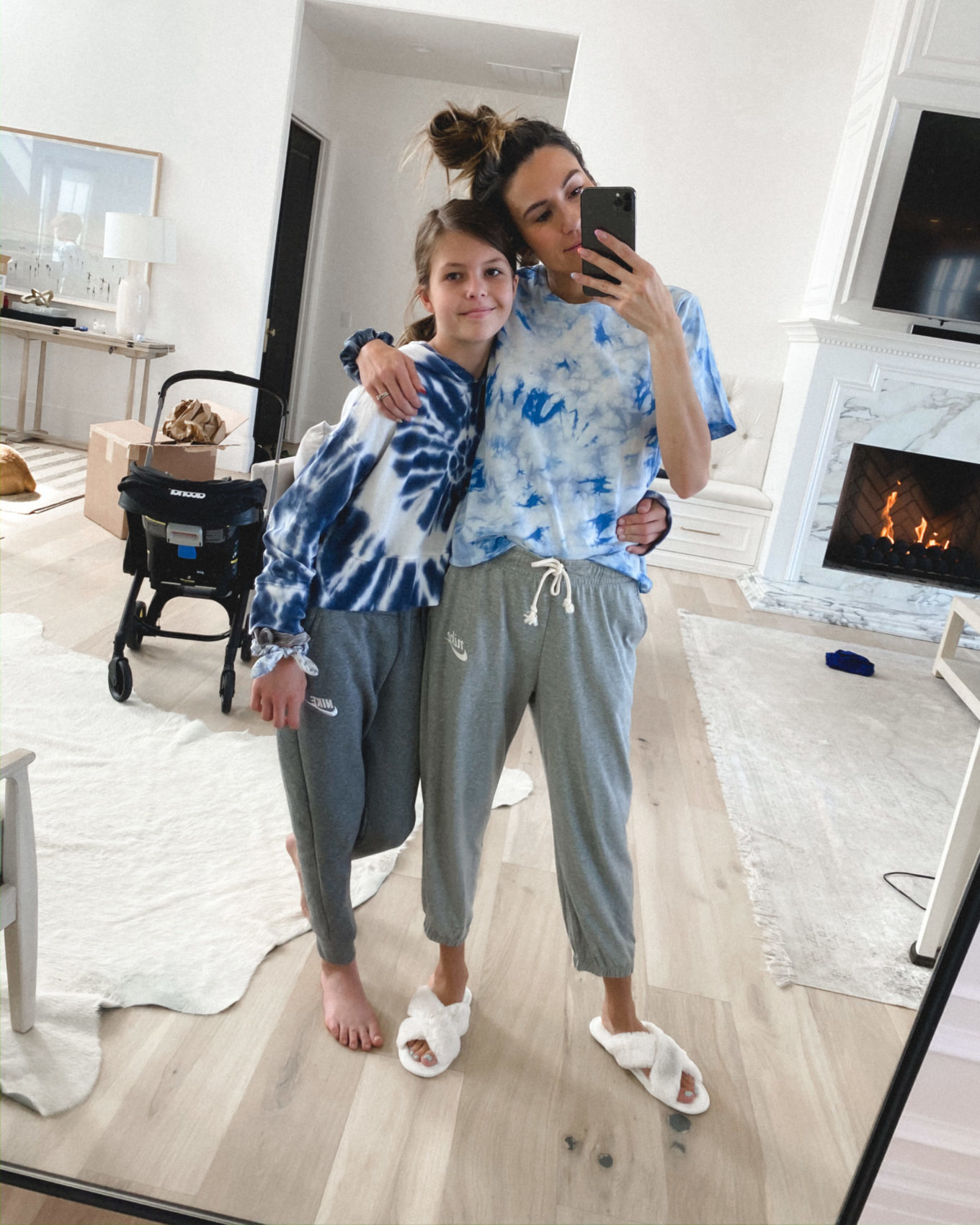 Outfits of the day aren’t the same these days 😜 Even with everything else seeming to slow down, the kids are growing faster than ever. I feel like they have outgrown so much of their clothes, I picked out some loungewear sale pieces to stock up on while they were on sale. (Especially with loungewear, it’s easer to size up for a loose, comfy fit so they can usually get more wear out of it than with other clothes.) Mara and I have been going all out with the tie-dye haha. I’m obsessed with this sweatshirt we got for her (wishing they had it in my size!). Got this this tee for me! It comes in 4 colors (I have it in this light blue and black/navy – so good!) and it’s on sale right now for under $20. Also you have seen these slippers on repeat lately – on sale under $20 and comes in multiple colors, I got the grey and pink too.