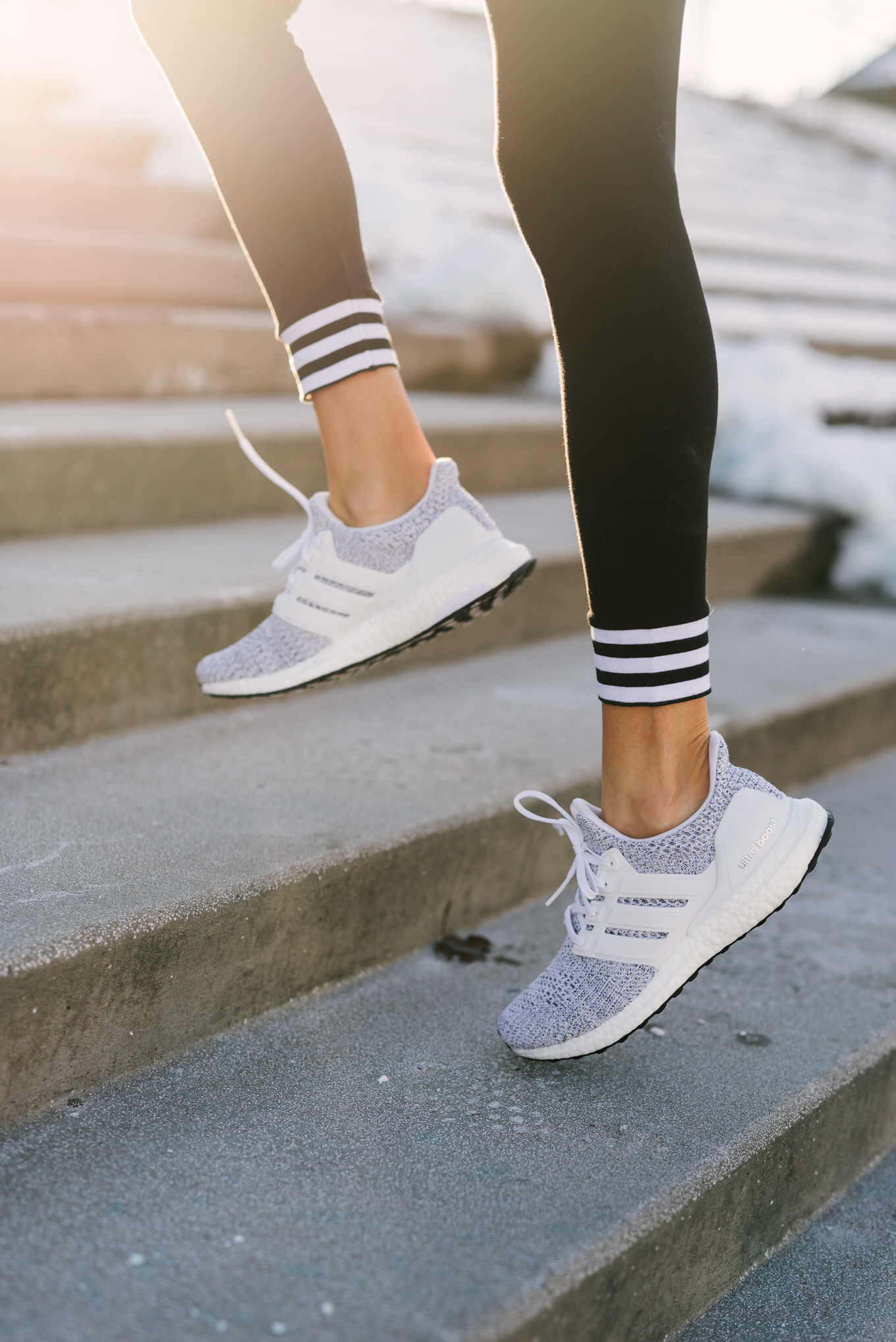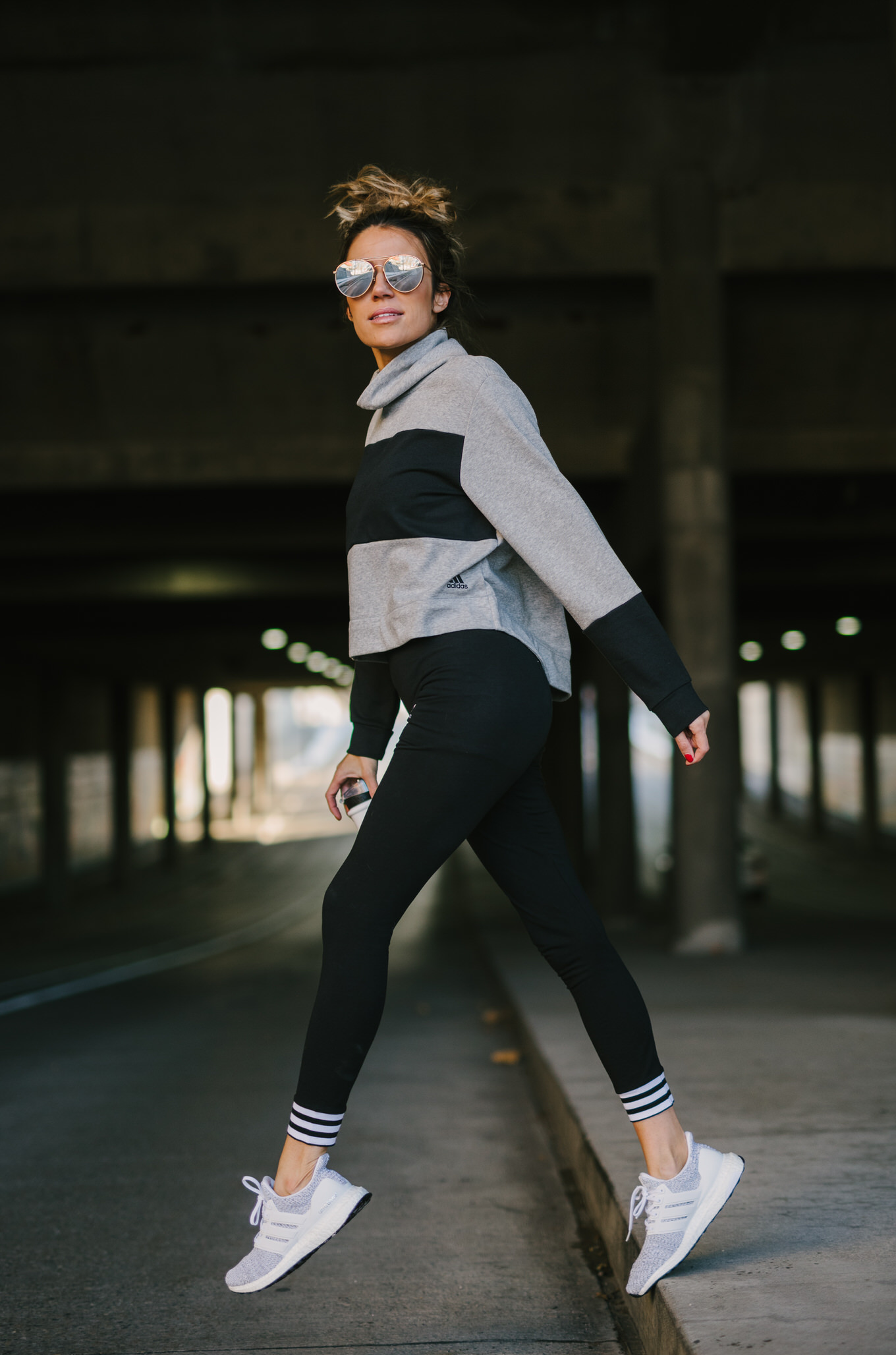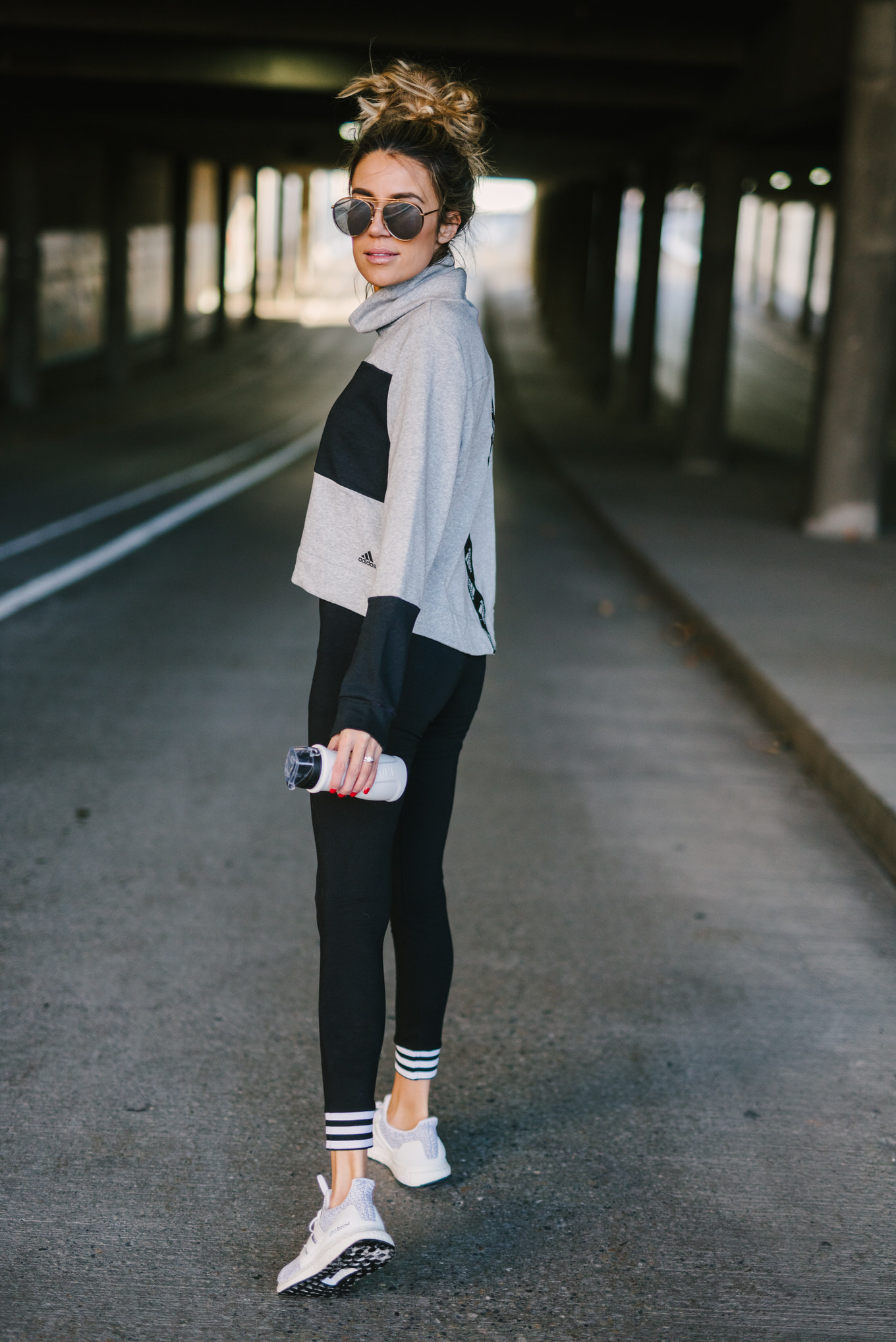 - I haven’t bought a ton of new clothes lately (been mostly getting new home decor stuff), but I did get some new work out clothes, because, well I just love comfy clothes. These sneakers I’m obsessed with, they come in lots of colors and they are probably my most comfortable shoe! I had them in two colors in the older styles and wore them out so I just got new ones a couple weeks ago. I also got this cute Adidas sweatshirt . I love the slouchy neck on it and it’s on major sale right now at Finish line (under $50)! They have so much cute Adidas stuff right now. I also ordered these pink Ultra boosts that are on sale.