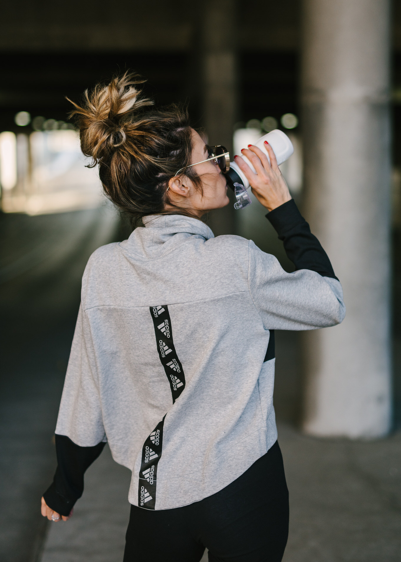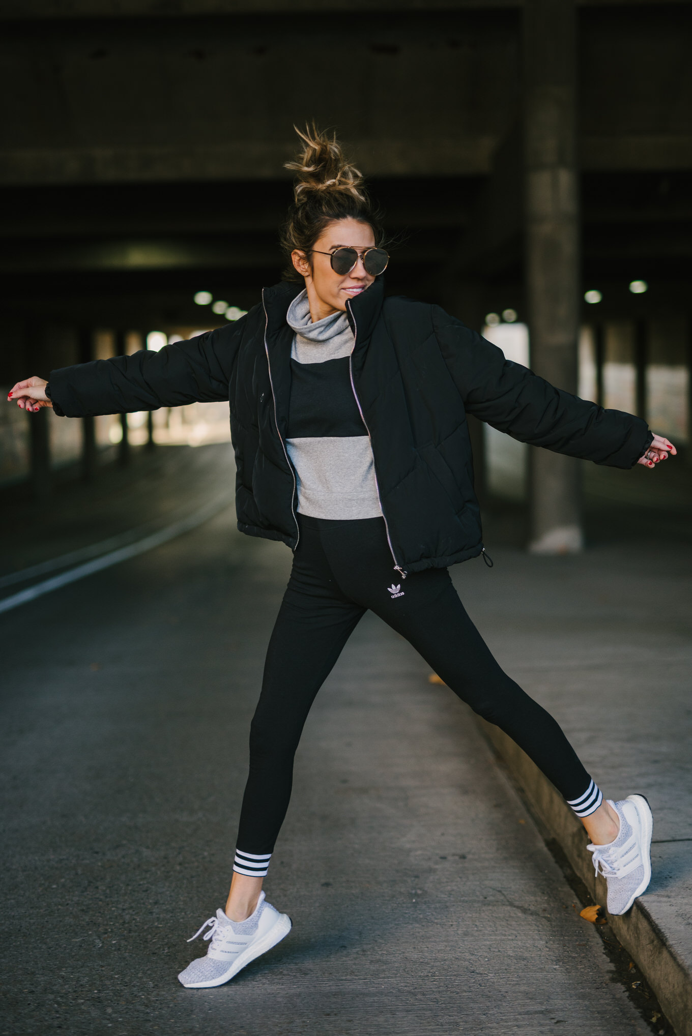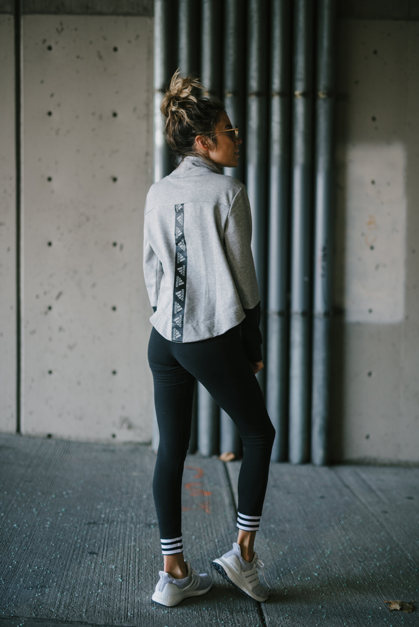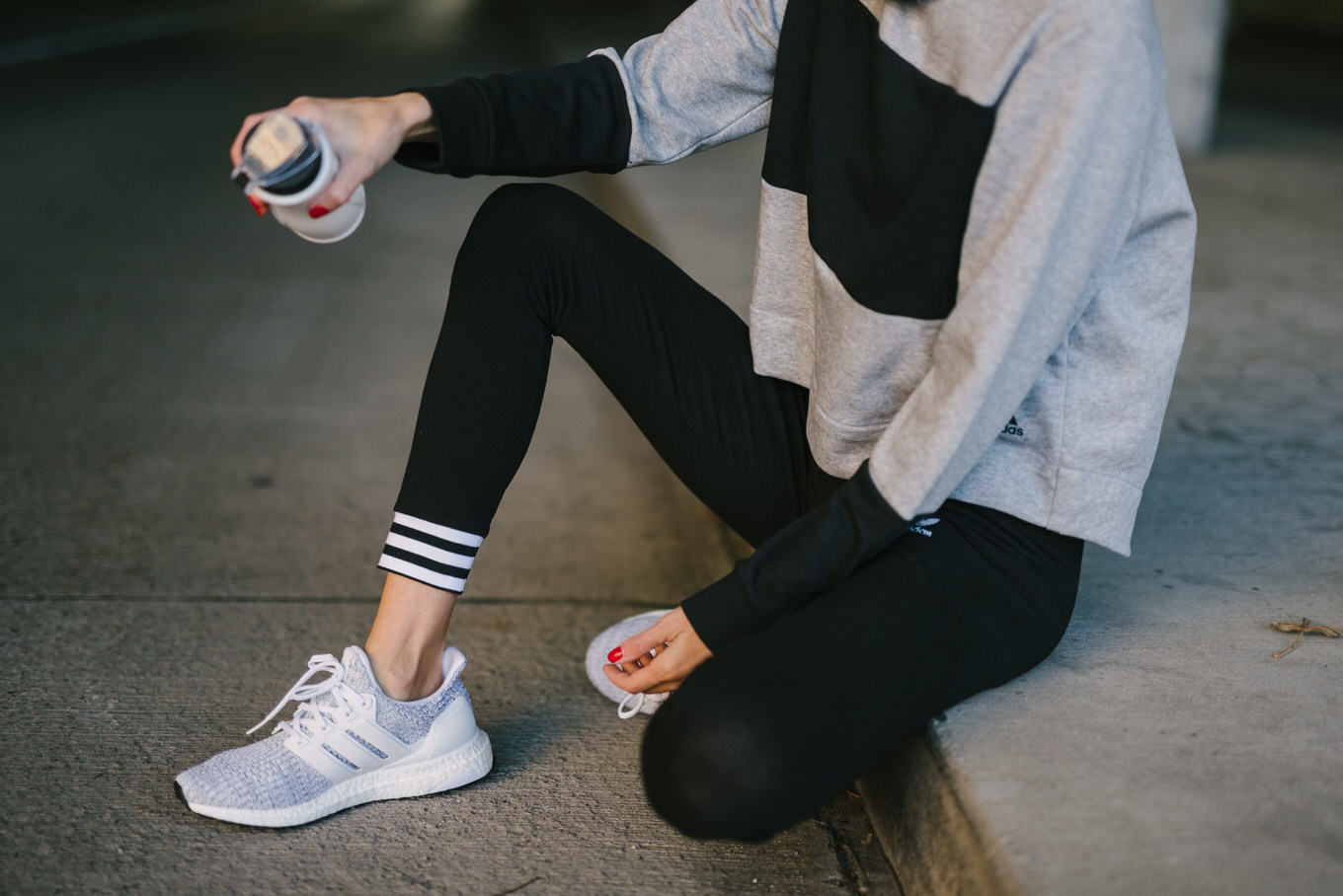 - I haven’t bought a ton of new clothes lately (been mostly getting new home decor stuff), but I did get some new work out clothes, because, well I just love comfy clothes. These sneakers I’m obsessed with, they come in lots of colors and they are probably my most comfortable shoe! I had them in two colors in the older styles and wore them out so I just got new ones a couple weeks ago. I also got this cute Adidas sweatshirt . I love the slouchy neck on it and it’s on major sale right now at Finish line (under $50)! They have so much cute Adidas stuff right now. I also ordered these pink Ultra boosts that are on sale.