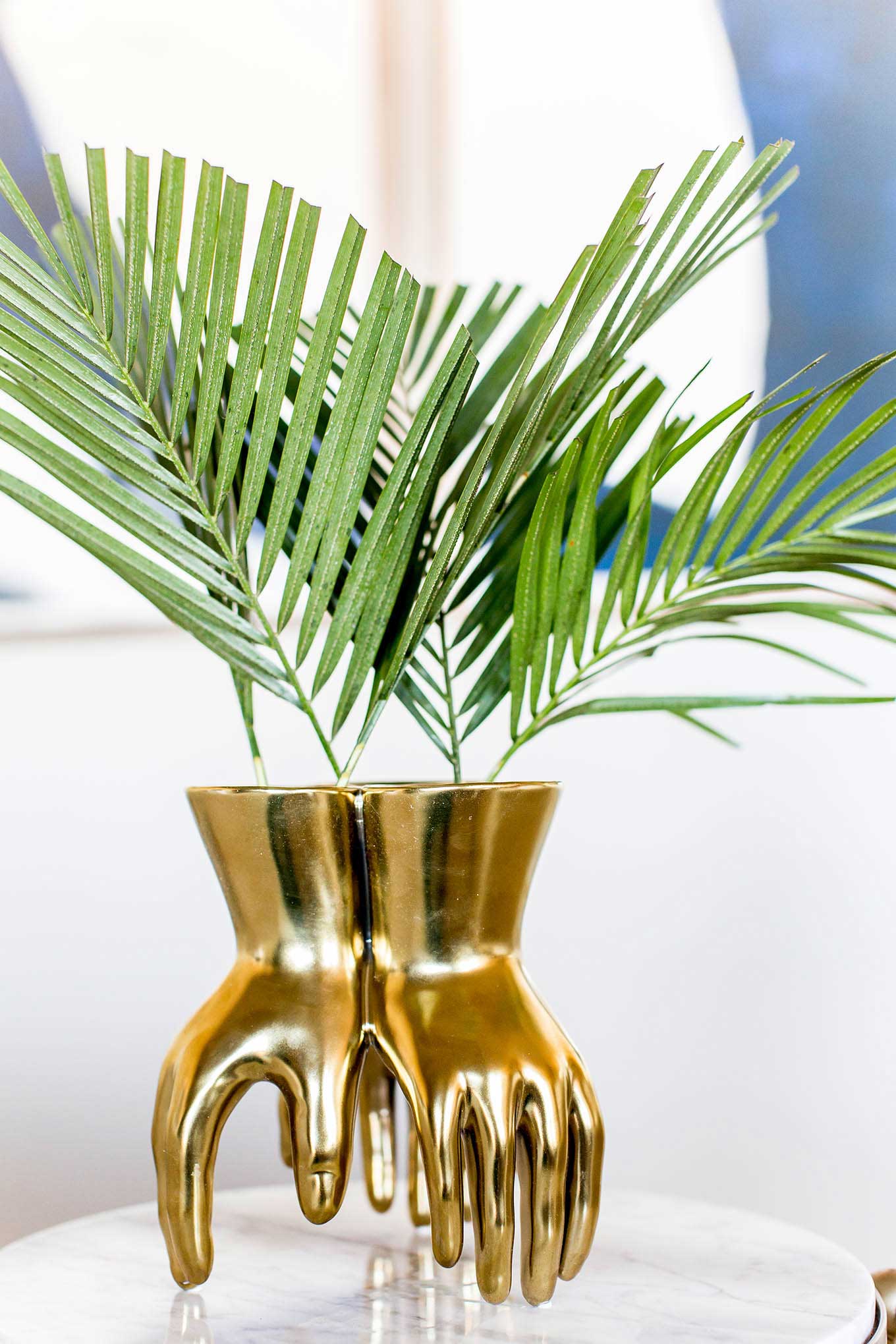 This gold hands vase can either be used as a vase or statement piece on a shelf or coffee table. I love it both ways!