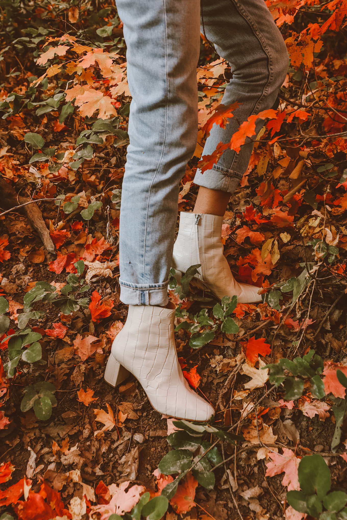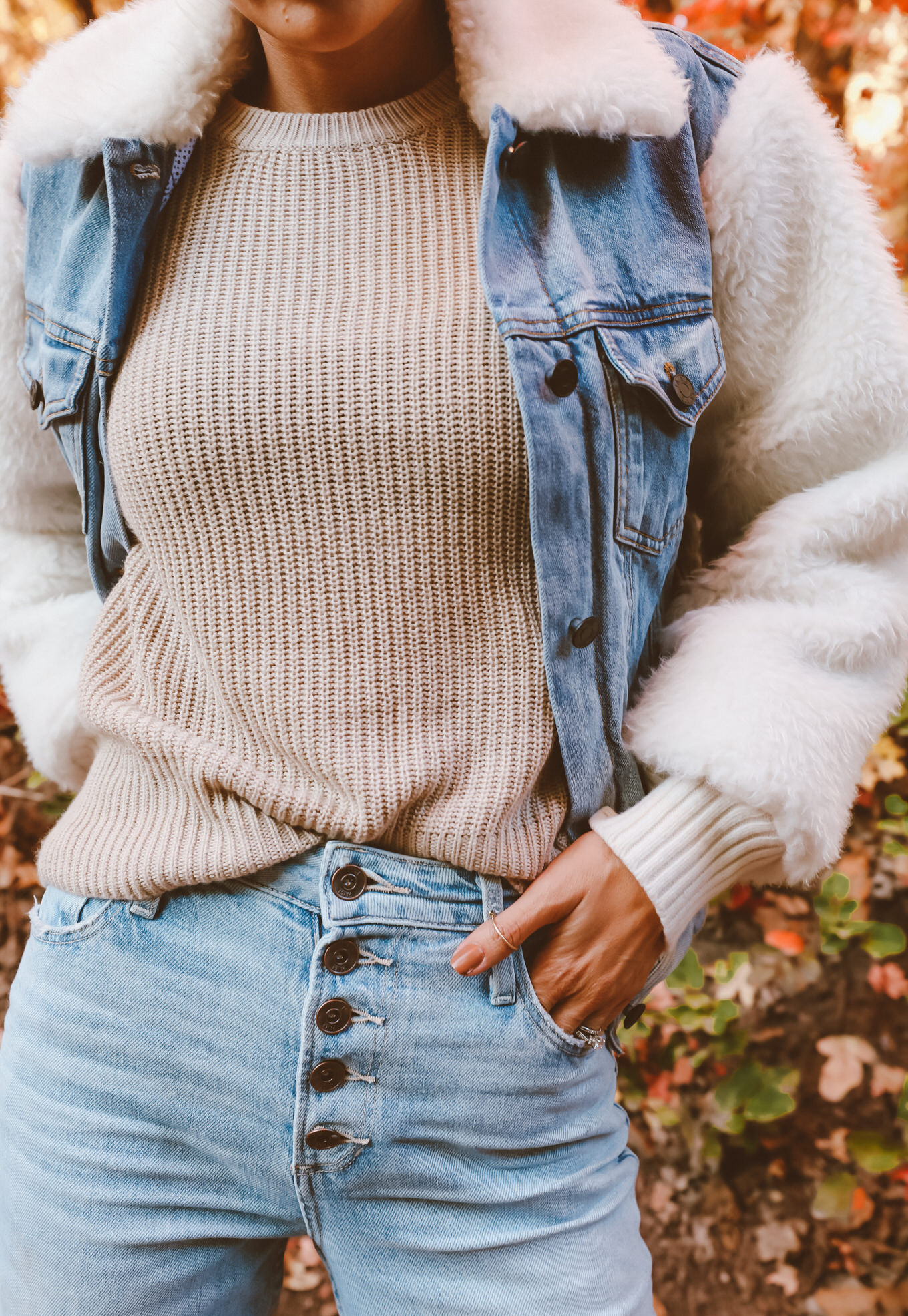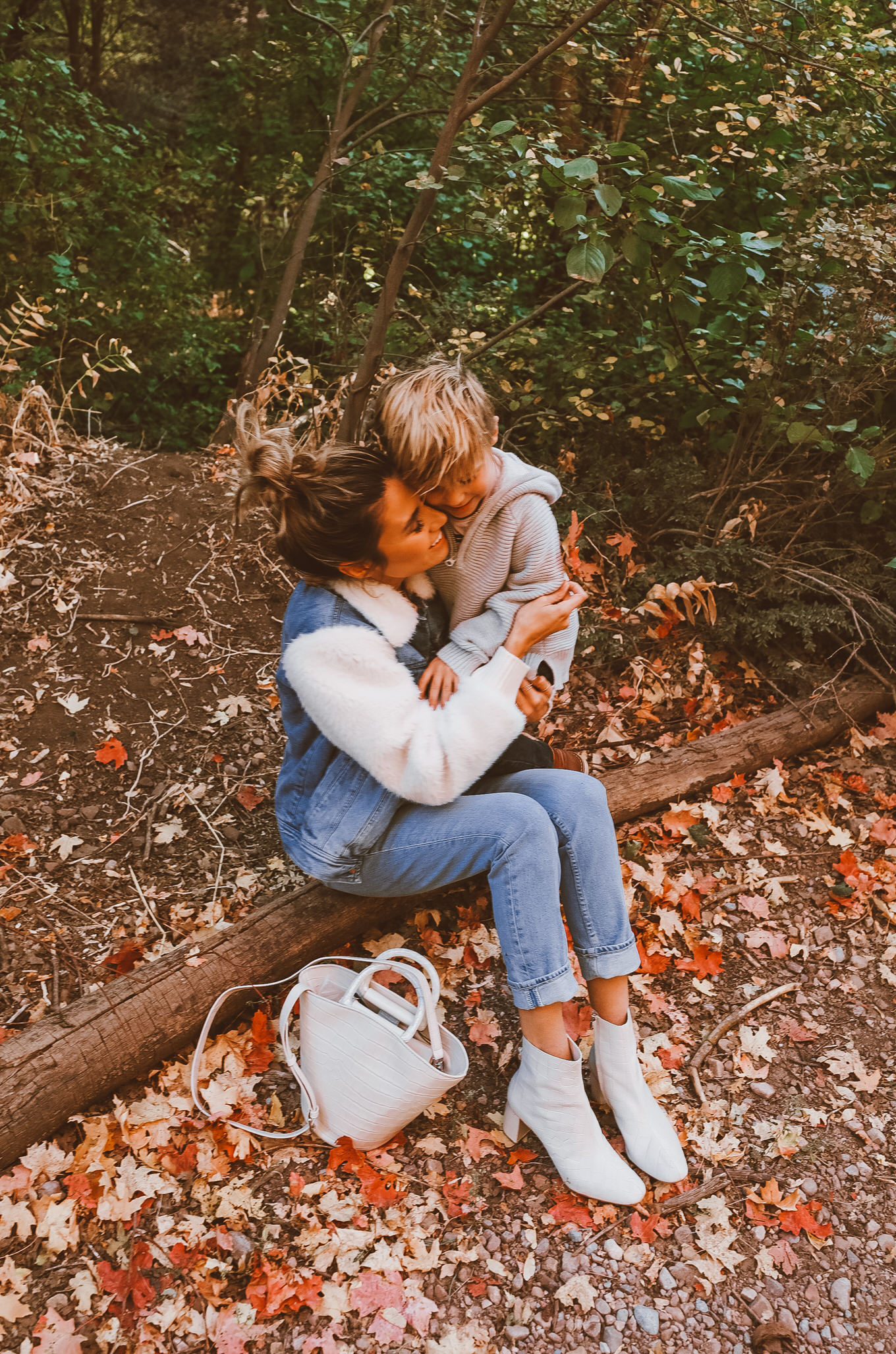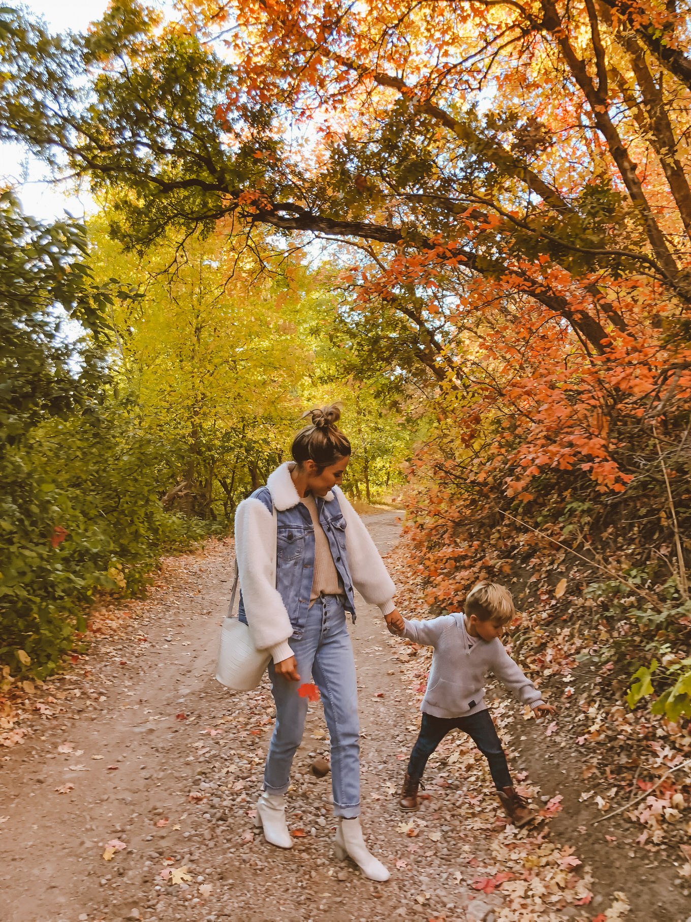 October is finally here!!! My favorite time of the year for so many reasons. In Utah the trees are the prettiest colors ever! We go on drives through the mountains for no reason, with no destination in mind. Cody got a new old school car that can go up in the mountains, or on rough trails so we went up the canyon and found the most gorgeous trails and trees. The temperature is finally not too warm, we get to pull out all of the cozy sweaters (yay for #sweaterweather!!) and boots I picked out this jean jacket that I am obsessed with – I love that it isn’t the basic jean jacket and has the faux fur sleeves and collar. It goes perfectly with my favorite new white boots! This amazing sweater will also be on repeat…it’s seriously so so soft.