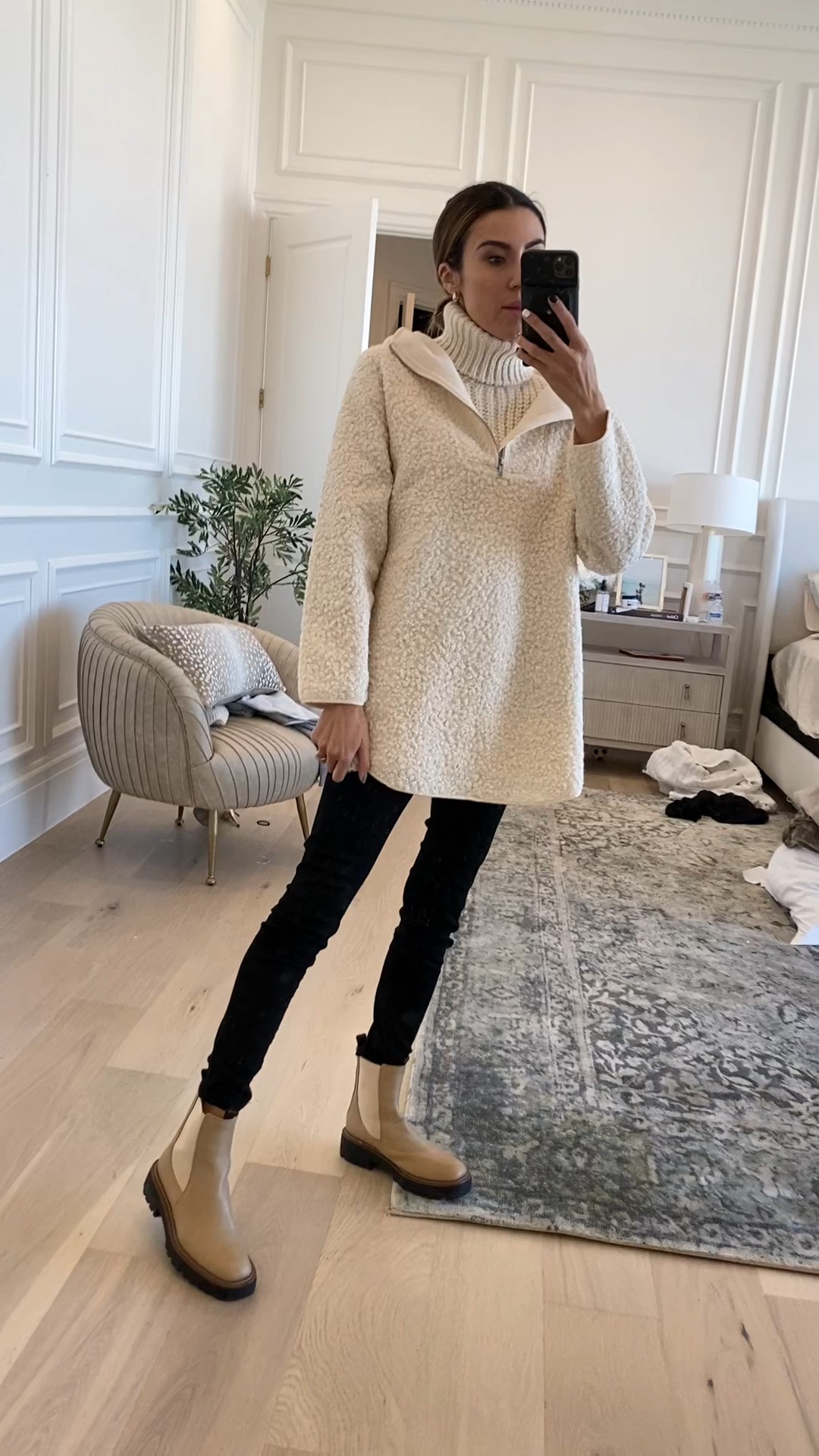This pullover is back in stock in all sizes right now! (Also 20% off right now for orders over $75! It’s been one of my favorite layering pieces this season. So cozy and love the casual oversized vibe.
