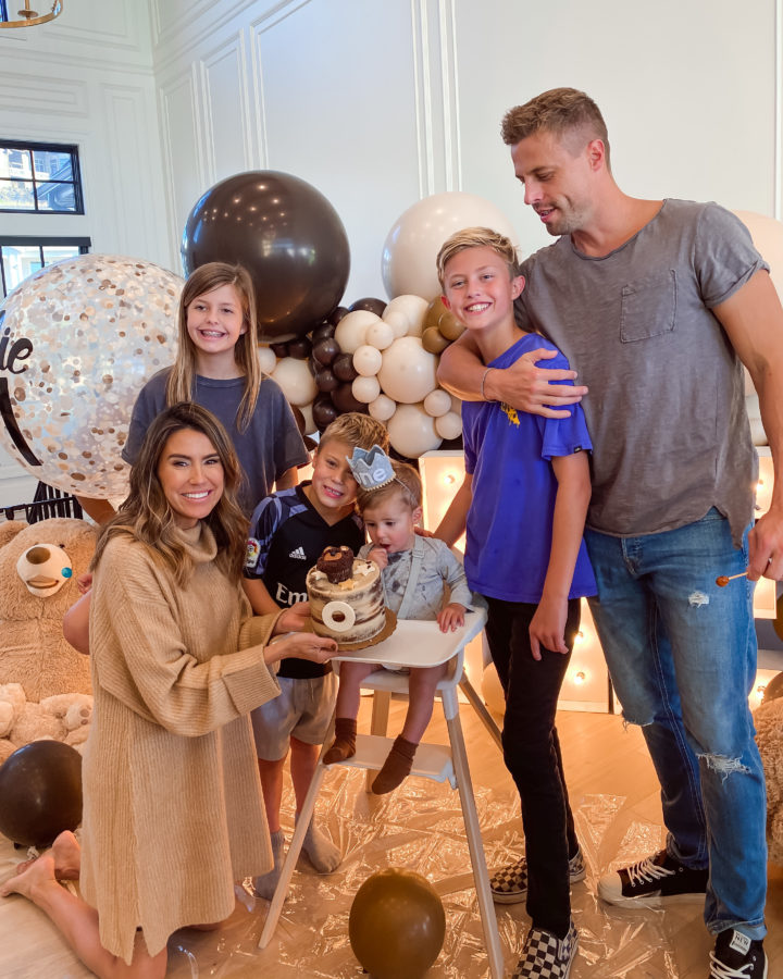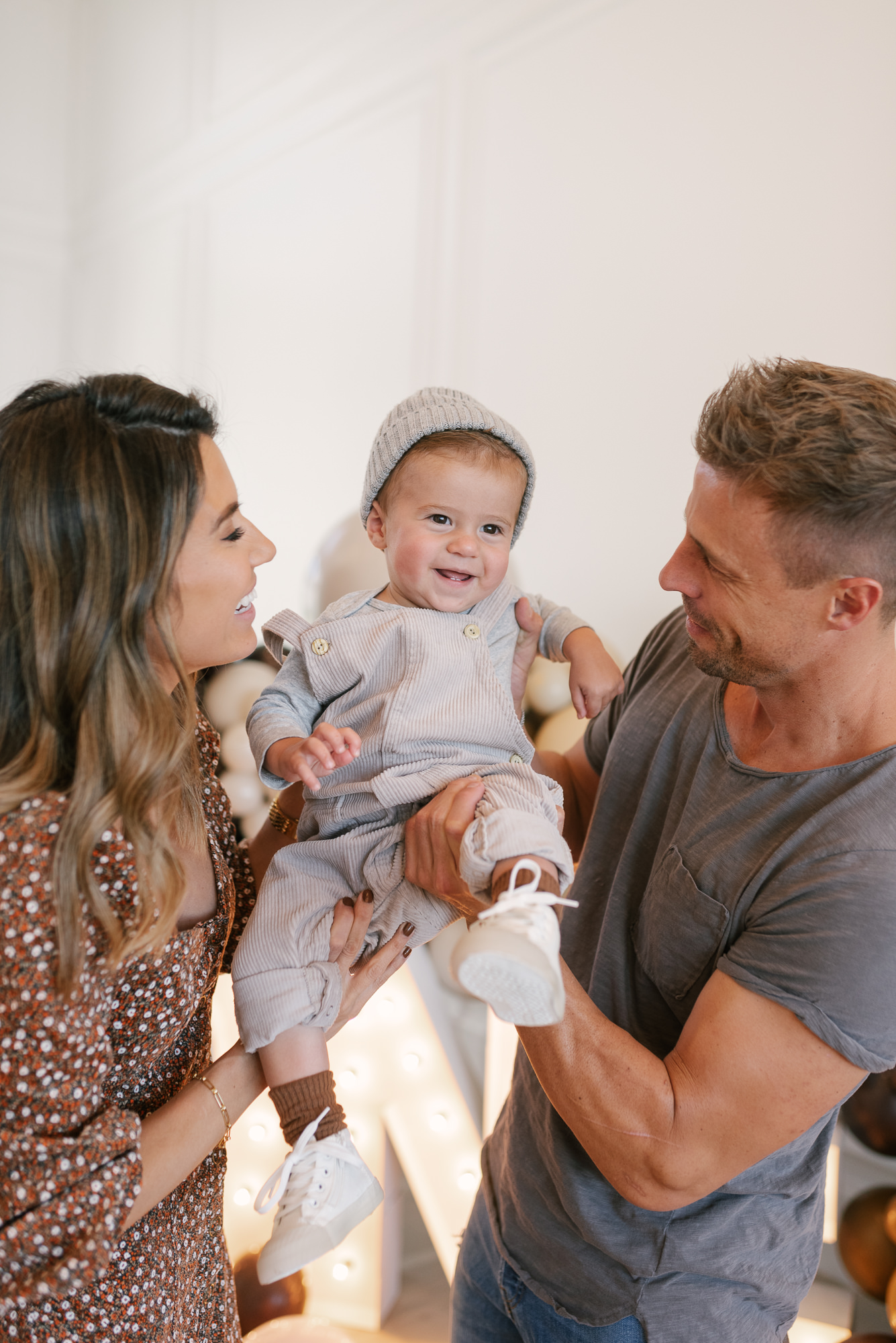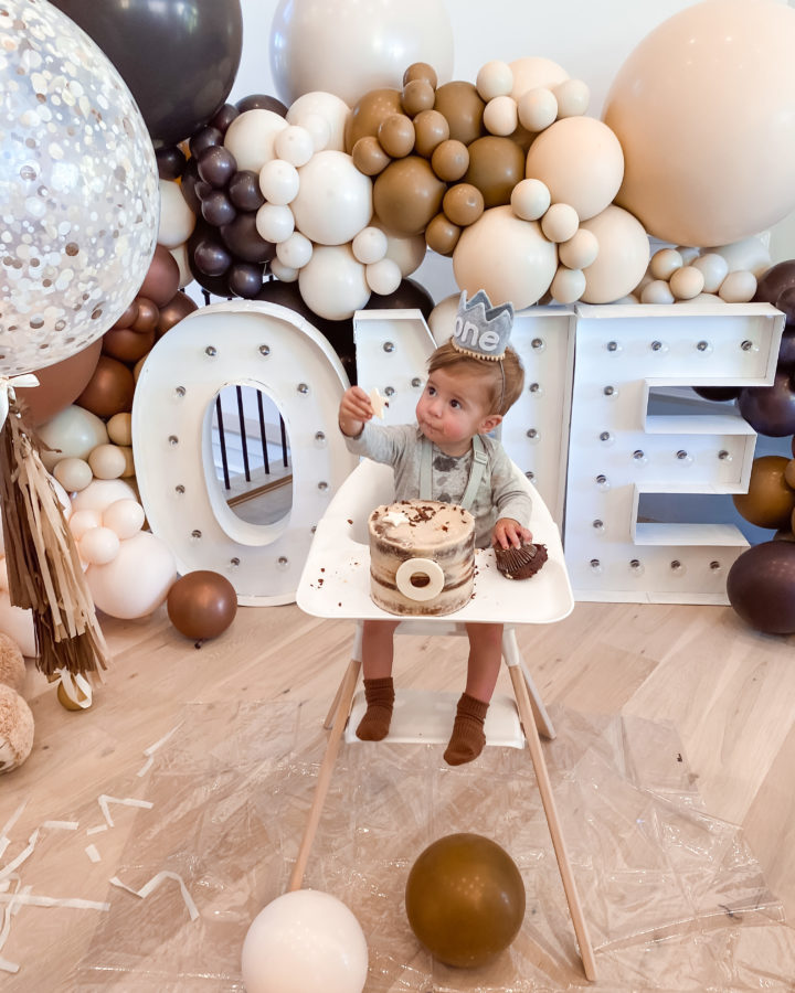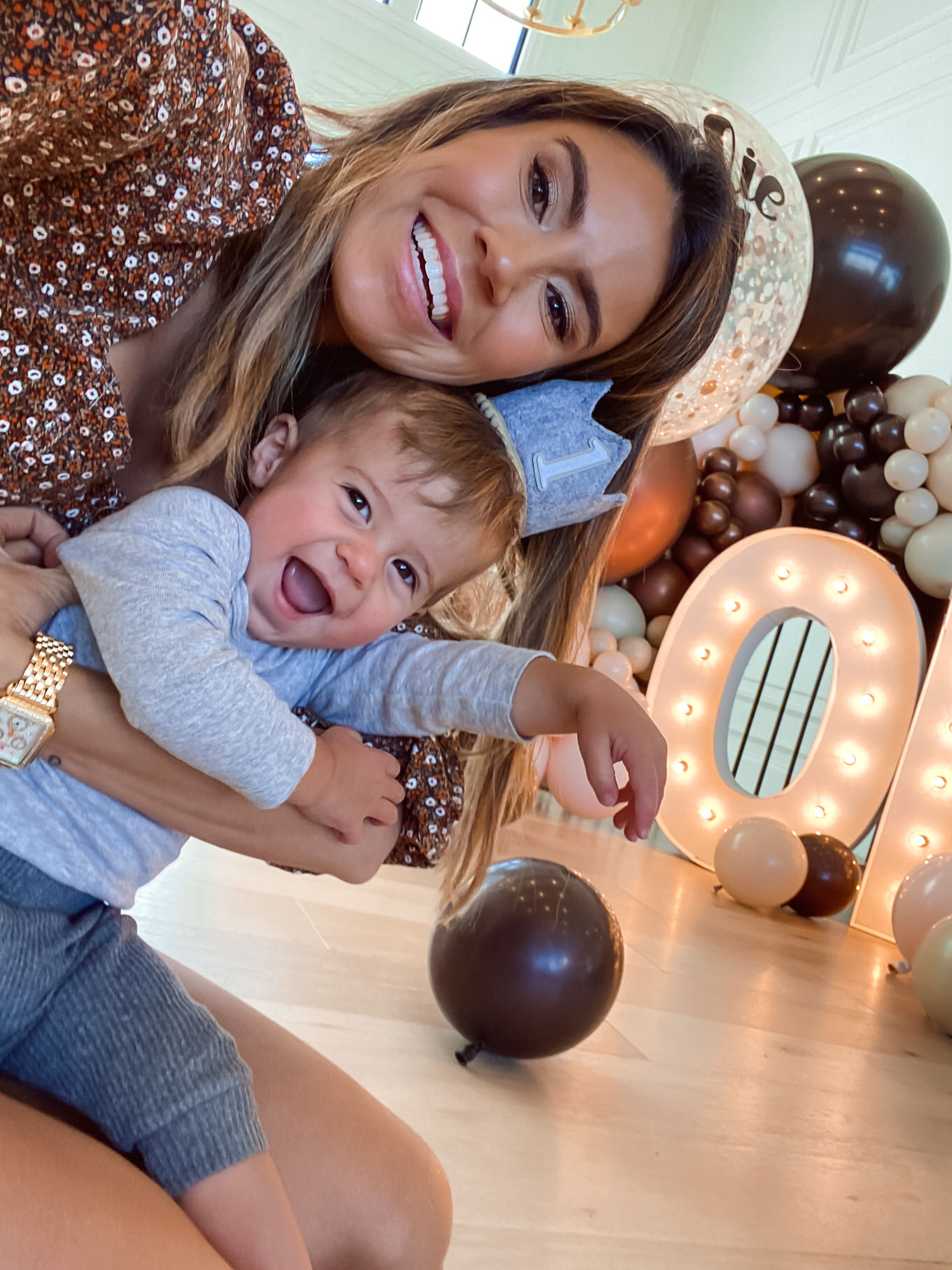 OUR BABY BOY TURNED 1!! I seriously can’t even believe it. How is he ONE! It was birthday marathon at our house last week. Wes birthday was the 26th, Ollies was the 30th, and Cody and my moms birthday was on the 4th. So it was party after party 🙂 The day before Ollie’s birthday I cried my eyes out haha. Cody and I went on a date night and in the middle of dinner I just started crying. Knowing this is most likely our last baby, all these emotions just hit thinking about how much he’s grown, our time at the NICU when he was born, it was just a flood of emotions. But then on his actual birthday it was just PURE JOY. When I was little I got a teddy bear I carried everywhere named Oso (spanish for bear – I was fluent in Spanish as a little girl 🥰). So I was up super late one night (my creativity always hits super late at night) and it hit me how cute would a teddy bear theme be for his first birthday! I found this ADORABLE bear that’s actually the same brand as the one I had growing up. 🙂 So I ended up using that teddy bear as inspo for the theme and love how it turned out, especially with all the fall tones.