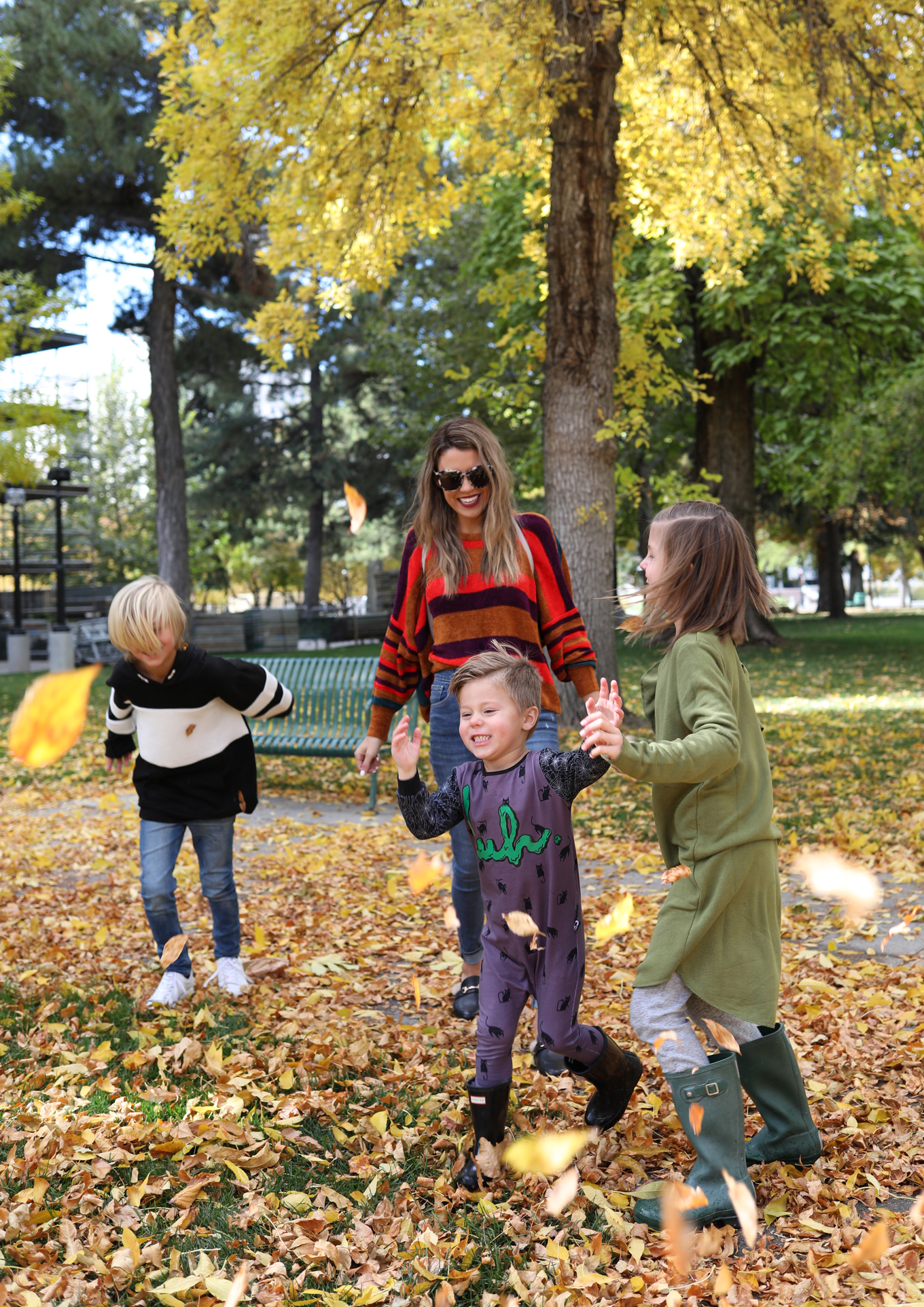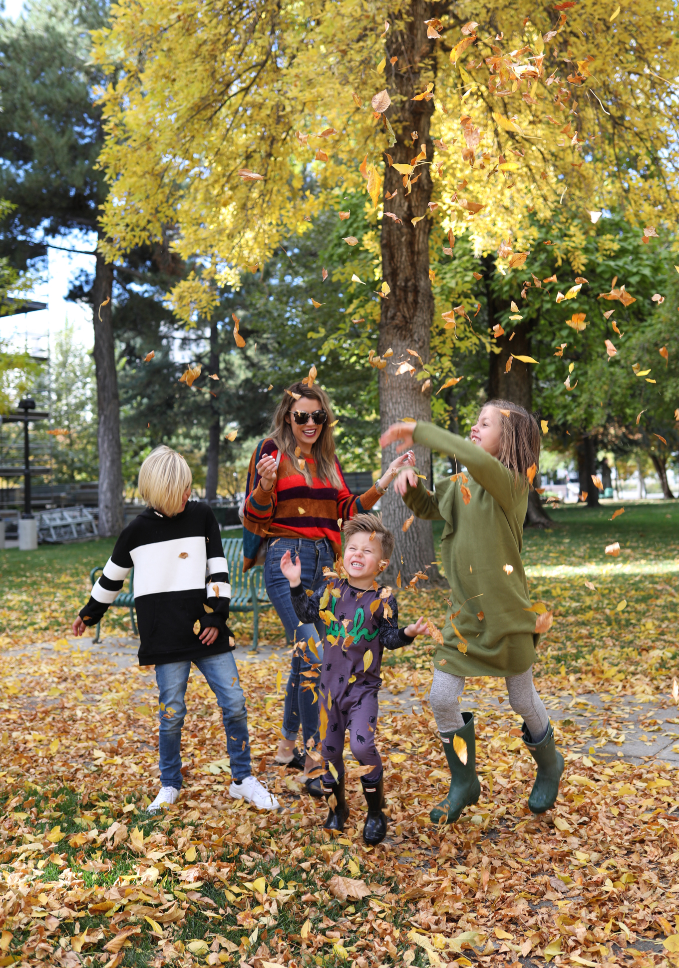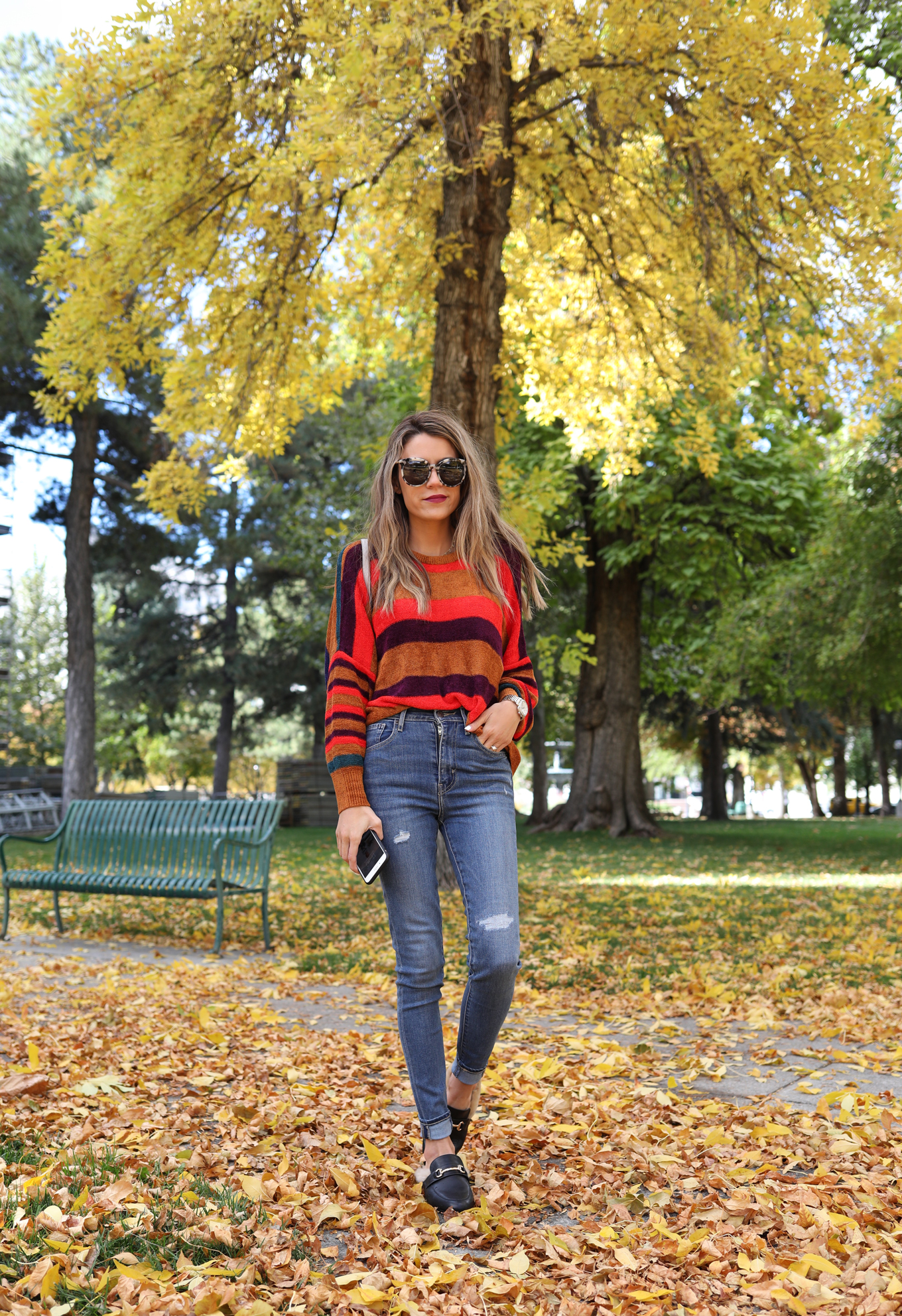 The bold stripes on this sweater scream fall! I just love the bright hues and the fall setting! You go momma!