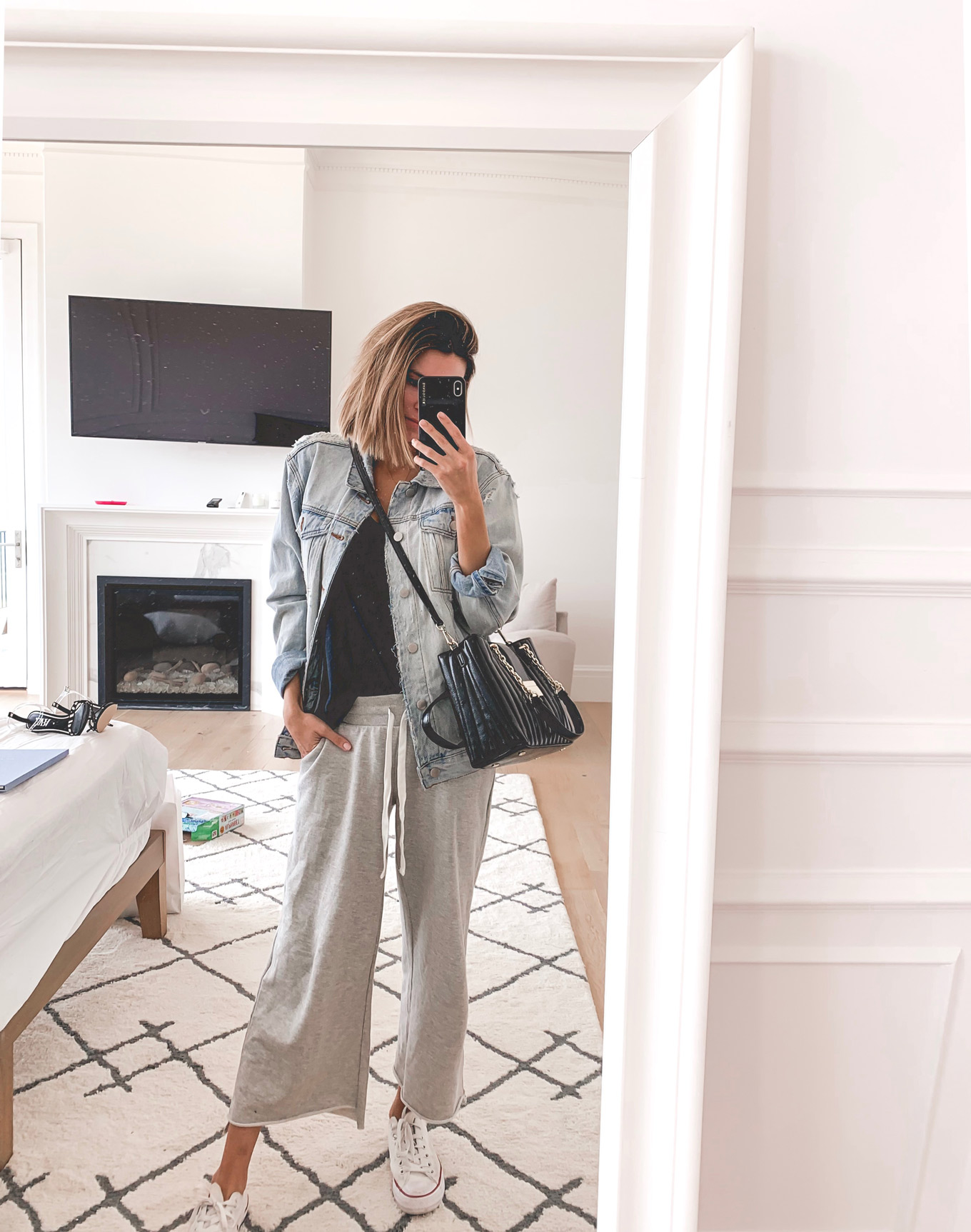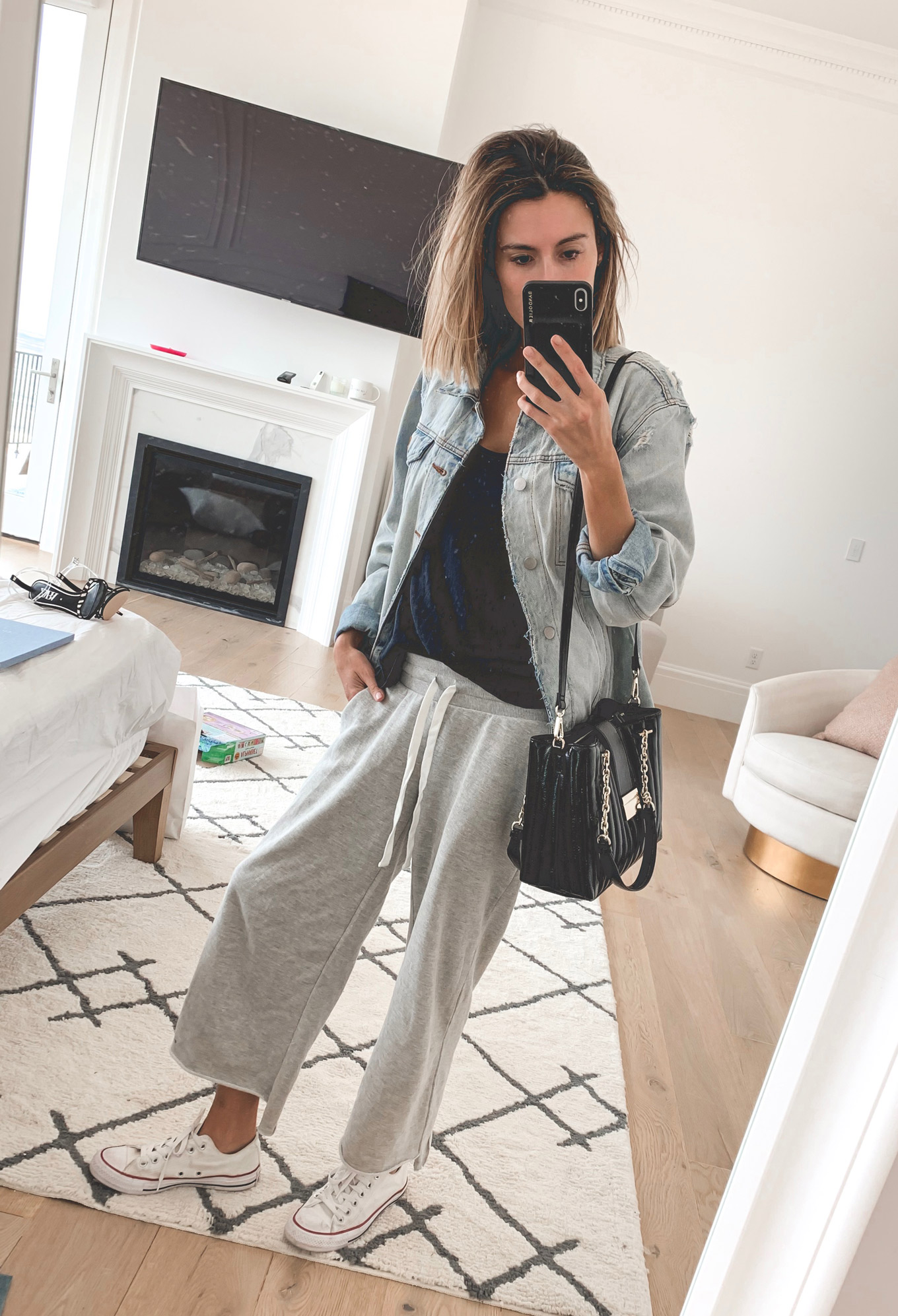 LOOK I: GREY CROPPED SWEATS | BLACK RACERBACK TANK | DENIM JACKET (SIMILAR HERE) | SNEAKERS |