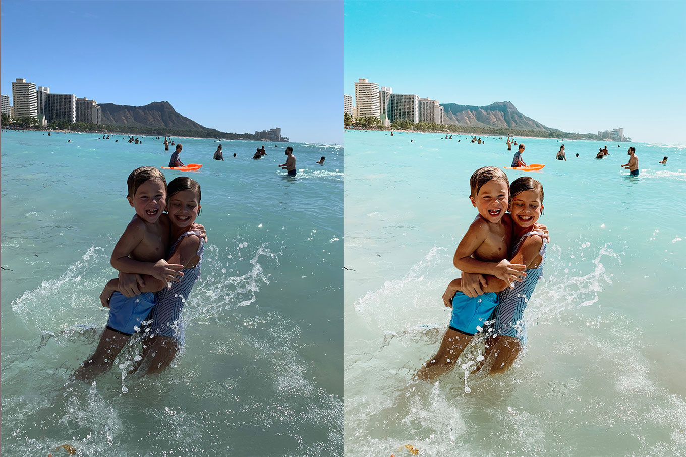 Hey hey! We launched this preset pack during our last trip to Hawaii and it is my go to edit for all our summer beach pics. I always get tons of questions on how I edit my travel pics, so I wanted to put together a blog post showing you some before and after’s with our Hawaii Preset Pack (on sale). I use these mobile presets for all of our beach trips. Scroll down to see some before and after shots and which presets I used for each.