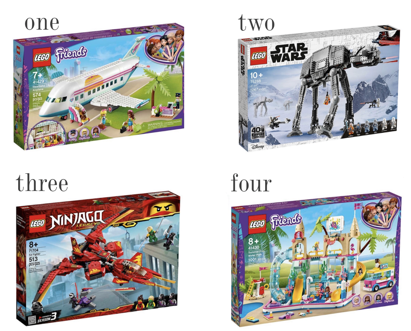 DETAILS: 1. AIRPLANE LEGO SET (20% OFF) | 2. STAR WARS LEGO SET | 3. NINJAGO LEGO SET (20% OFF) | 4. WATER PARK LEGO SET