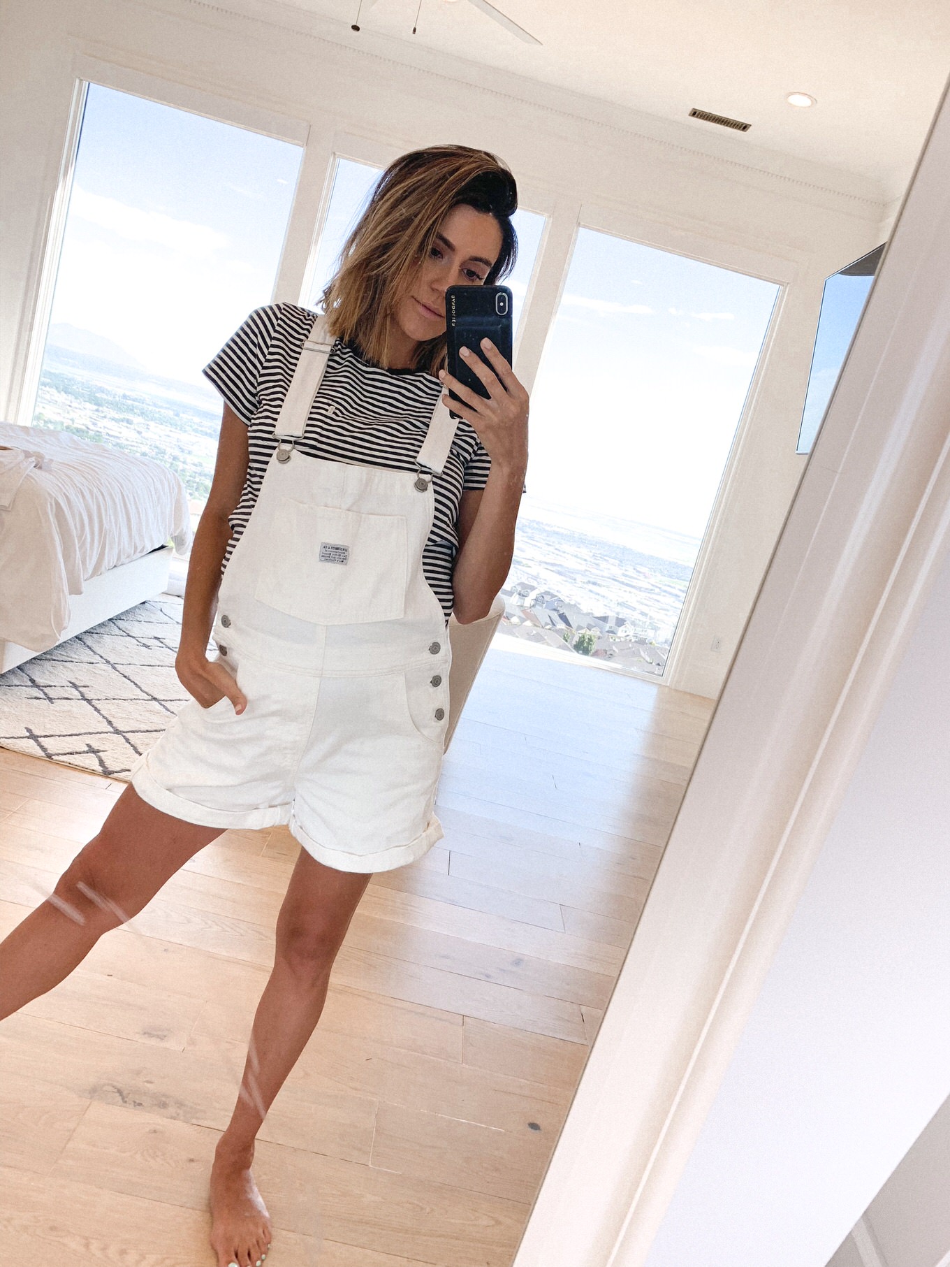 DETAILS: OVERALL SHORTS (MORE SIZES HERE) | STRIPED TEE