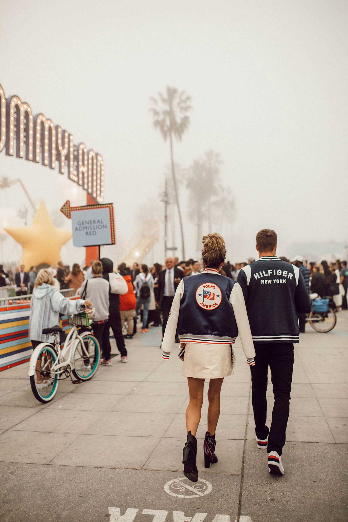 Happy Monday guys!! I am so excited to share pics from the Tommy Hilfiger show last month in California. I was actually REALLY excited to see major designers start presenting in California this season. It was totally a different feel than NYC. Tommy is hands down always one of my favorite shows every season. They are continually on the cutting edge of creative ways to present and the whole team is so sweet they go above and beyond. This season they shut down Venice Beach and redid the whole thing as Tommyland. From food trucks, games, concerts (hey Fergie) to custom shirt shops and street performers it almost felt like a mini Coachella.